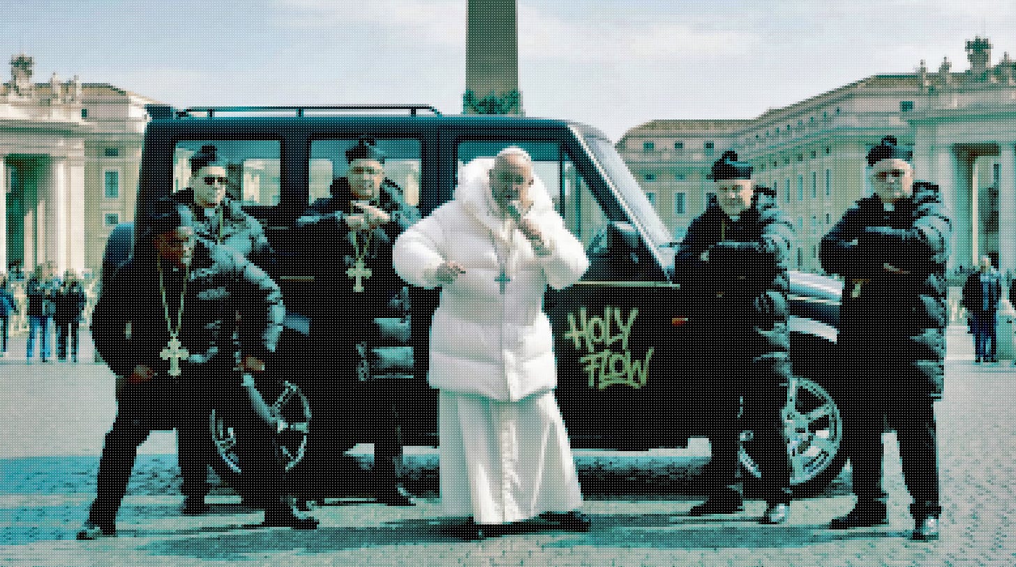 In late March 2023 many people, including myself, were briefly fooled. Scrolling through our feeds we spotted, evaluated and in some cases responded to a quirky but oddly plausible image of Pope Francis in an expansive white puffer jacket. In the years since many (but not all) of us have become savvy to the telltale features of AI images, and so fears about our already fragile shared reality crumbling around us have been assuaged.